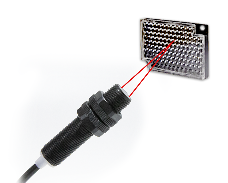 В световозвращающей конфигурации луч света, излучаемый промышленным фотоэлектрическим переключателем, отражается обратно в приемник специальным угловым отражателем. Ключевой технологией здесь является поляризационный фильтр . Излучатель излучает свет, поляризованный в одной плоскости, а отражатель поворачивает этот свет на 90 градусов, прежде чем отправить его обратно. Фильтр приемника принимает свет только при повороте на 90 градусов. Эта усовершенствованная конструкция означает, что наши надежные фотоэлектрические датчики могут различать свет, возвращаемый отражателем, и свет, отраженный от блестящей детали, обеспечивая 100% точность обнаружения.